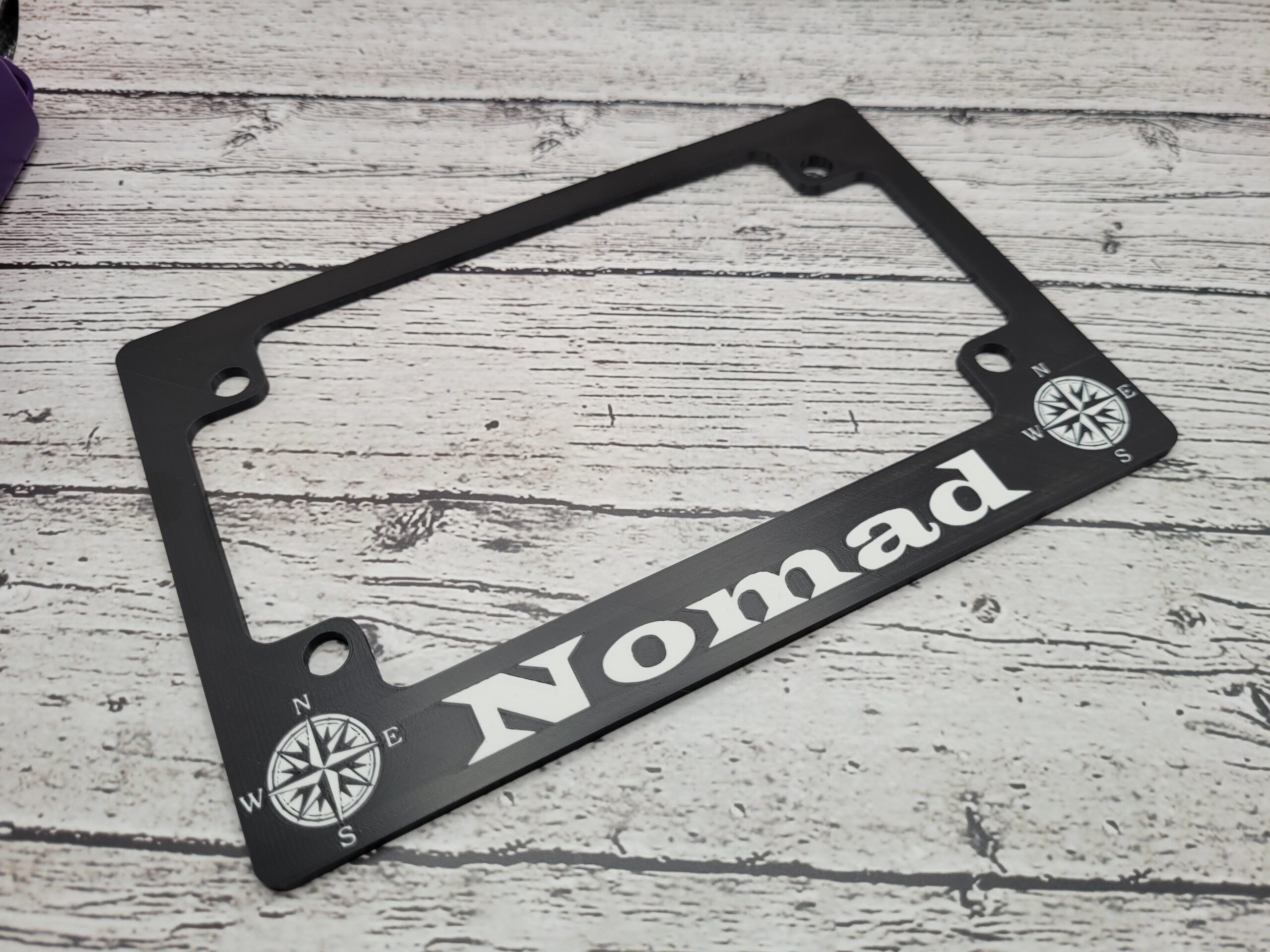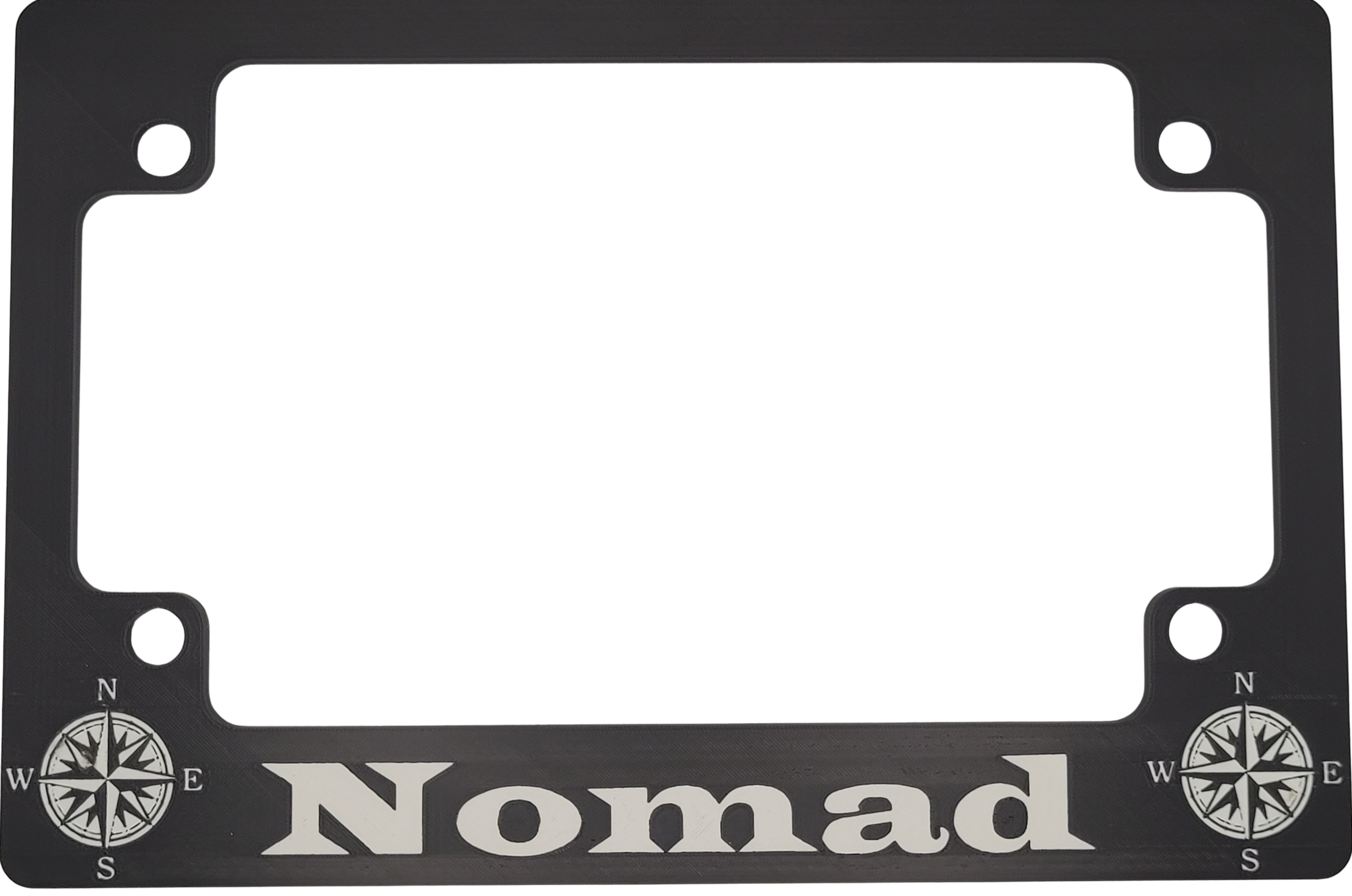 Fuel your wanderlust with the “Nomad” Motorcycle License Plate Frame by Voxel Creations. Designed for riders who crave adventure, this frame features two detailed compass icons and a clean, rugged design that embodies the spirit of the open road.