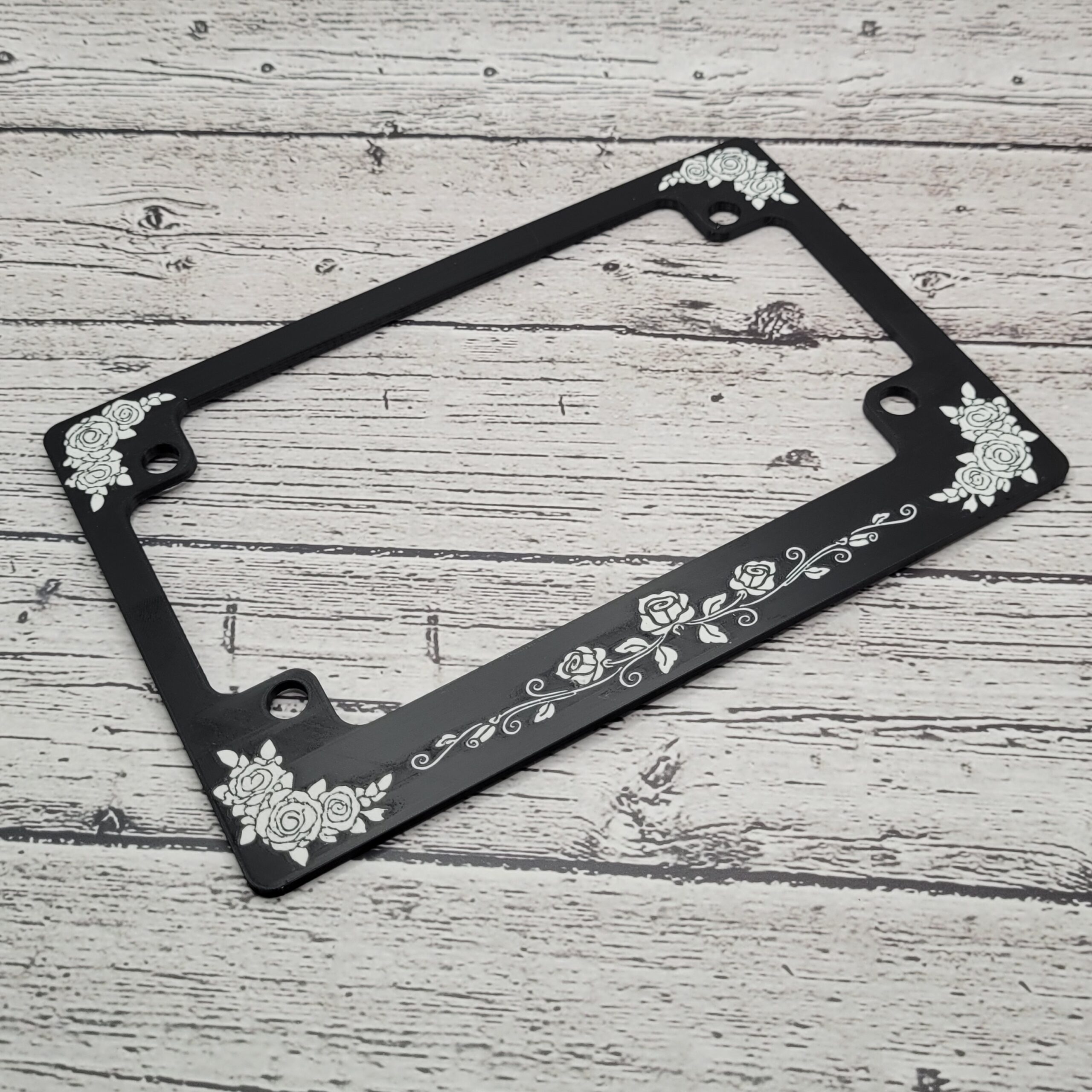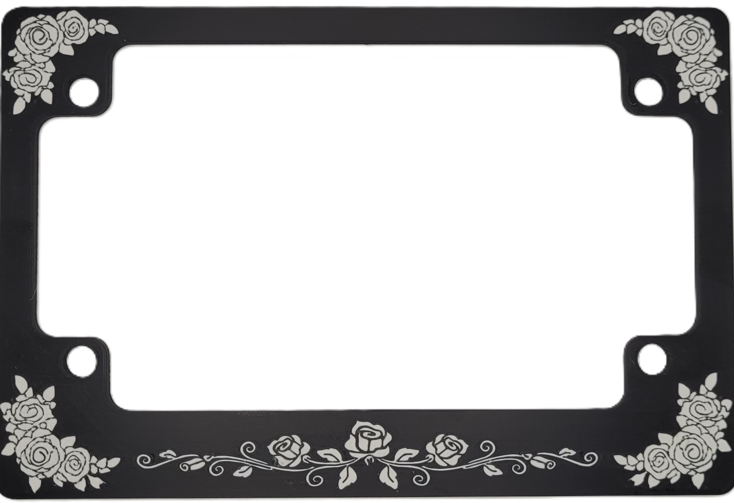 Bloom on the road with the Rose Elegance Motorcycle License Plate Frame, crafted for women riders who love a touch of grace. This 4×7-inch frame features a delicate white rose flower design with swirling vines, laser-etched onto a sleek matte black ASA plastic frame. Engineered for durability, ASA plastic offers exceptional UV resistance to keep the rose pattern vibrant, impact resistance to handle rough rides, and a lightweight build for easy handling.